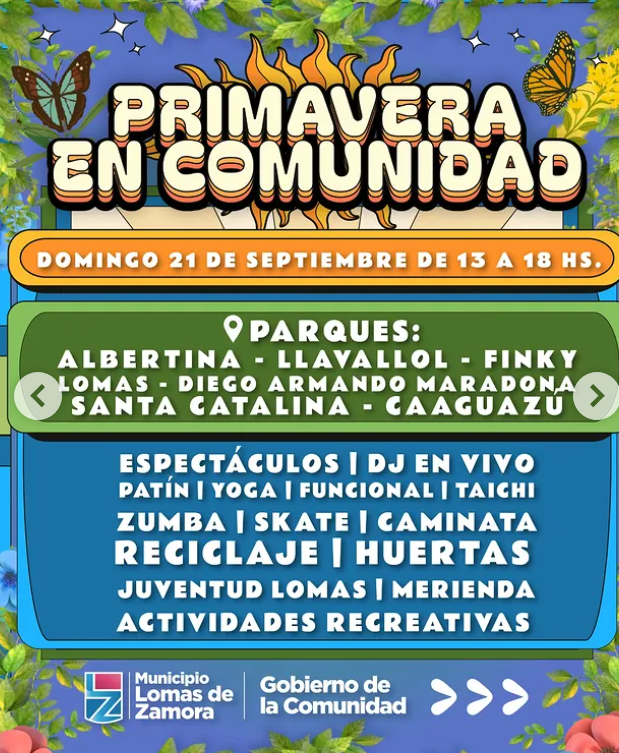 Este domingo 21 de septiembre, los parques de Lomas de Zamora serán protagonistas de una nueva edición de “Primavera en Comunidad”. La propuesta contempla un día completo de espectáculos, deportes y talleres para compartir en familia y con amigos, de manera abierta y gratuita.
