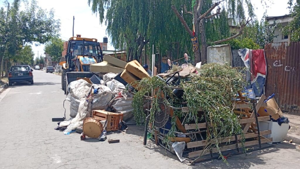 Por otro lado, en el barrio 3 de Enero, vecinos y vecinas se organizaron ante una situación de acumulación que ya obstruía la vía pública. A partir del diálogo con el vecino involucrado y con acompañamiento del CGM, se coordinó un operativo con Servicios Públicos para retirar los residuos, previamente separados del material reciclable. El trabajo conjunto permitió liberar la circulación y ordenar el lugar.