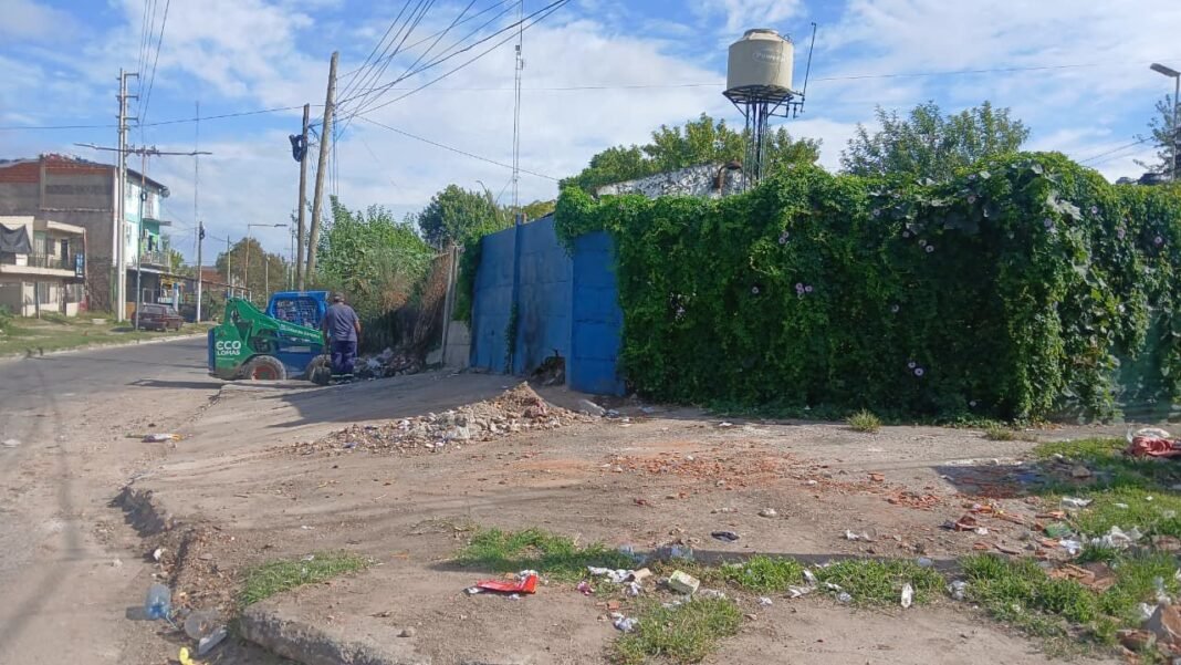 Uno de los operativos se realizó en la esquina de Defensa y Larrazábal, frente al Jardín Comunitario “Las Palomitas”, donde funcionaba un basural crónico. Allí trabajaron equipos de Servicios Públicos junto a una cooperativa del área de Ambiente, en articulación con el jardín y vecinos linderos que acompañaron la intervención. El objetivo no fue solo limpiar, sino también sostener el orden para evitar que el punto vuelva a convertirse en un foco de residuos.
