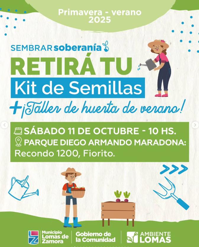 El programa inicia con una visita al barrio de Fiorito para la realizacion de un taller de huerta de verano y la entrega de semillas de estacion. La cita sera el sabado 11 de octubre a las 10 hs en el Parque Diego Armando maradona, ubicado en Recondo 1200, Fiorito.